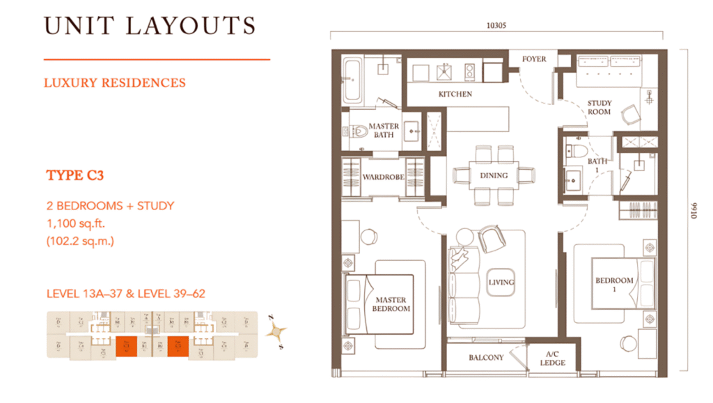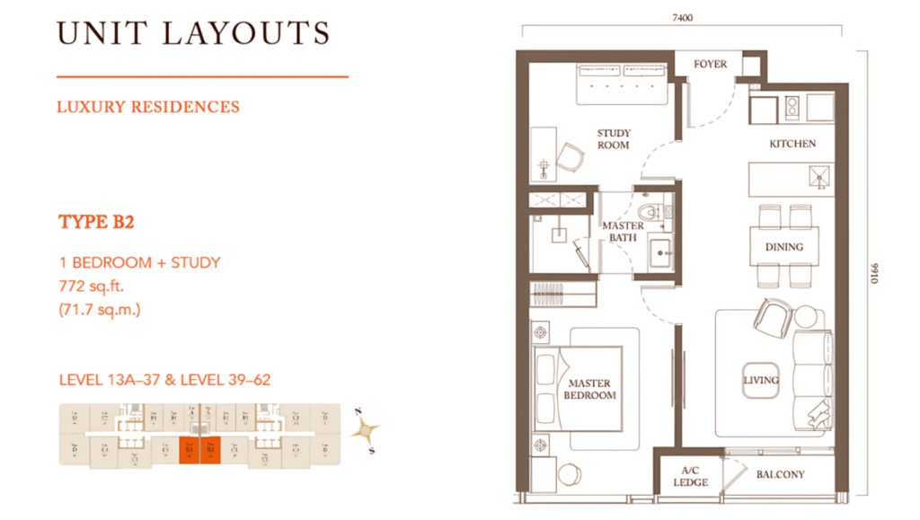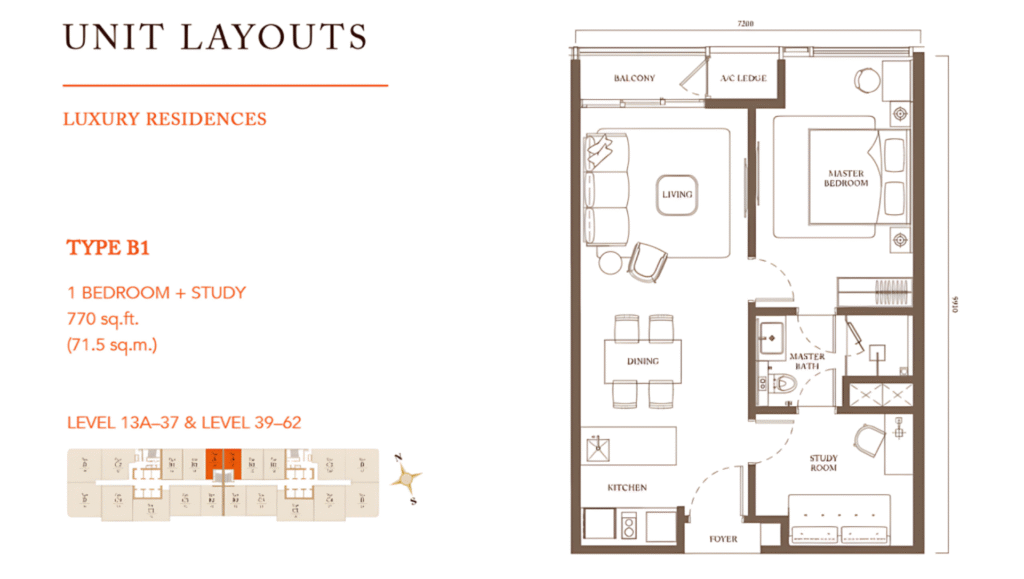 Ranging from cosy 504 sq.ft. studios to practical 1,272 sq.ft. suites